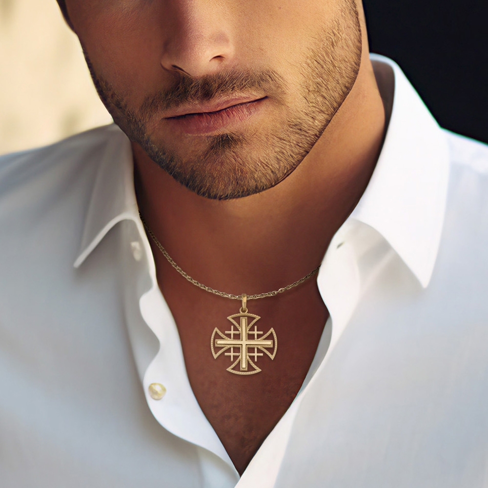 Today, it remains one of the most recognized emblems of faith worldwide, carrying deep spiritual and cultural meaning. Its timeless design makes it a meaningful choice for daily wear, available in both sleek modern styles and traditional designs. Explore our collection of Latin cross necklaces for men and women in 14K gold, 925 sterling silver, and diamond designs.