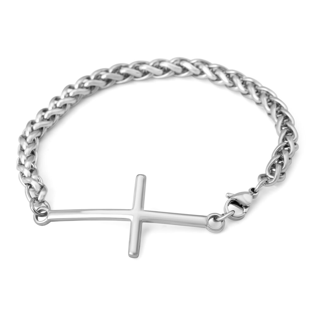 Looking for a Father’s Day gift that’s cooler than a tie and way more meaningful? This stainless steel men’s cross bracelet brings together faith, style, and a whole lot of character. With a sleek polished cross that curves around the wrist and a thick braided Spiga chain, it’s strong, modern, and just the right amount of bold.